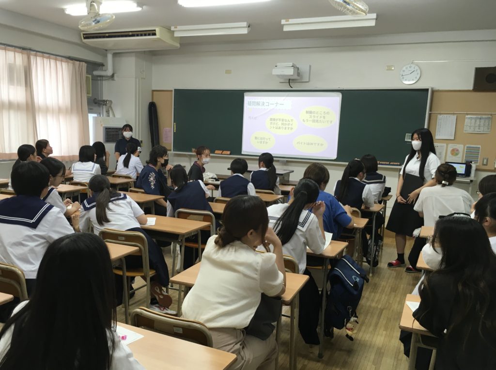館女生の普段の生活を紹介後、質疑応答タイムをとり、個別に対応させていただきました。質問をきっかけに笑いが起こる場面もあり、とても和やかで楽しい時間になりました!