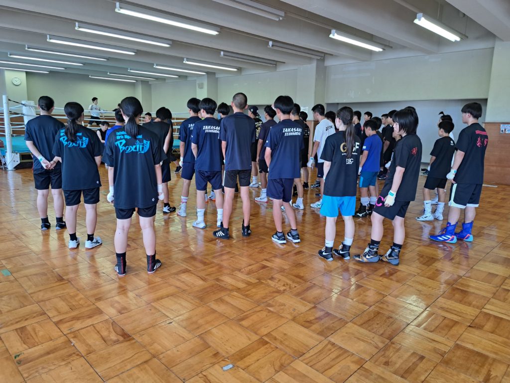 今回の研修会には、大学でもボクシングを続けている他校の卒業生も参加し、国民スポーツ大会関東ブロック大会に出場する伊勢崎工業高校の選手とスパーリングを行いました。少しでも技術を吸収しようと、みんなでスパーリングを観戦しました。