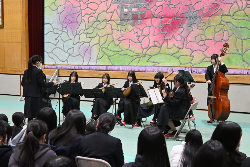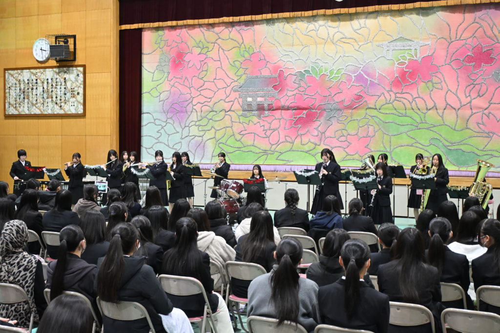 筝曲部、マンドリン・ギター部、芸術部書道班、演劇部、吹奏楽部、ダンス部が発表を行いました。