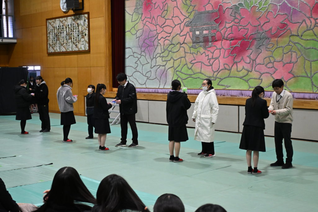 発表の準備の時間を利用し、発表の無い部の代表の生徒が各部の先輩方に対してメッセージを送りました。