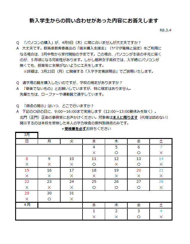 新入学生からの問い合わせがあった内容にお答します 2026 3/04 Topics お知らせ 2026年3月4日 合格者へQ&A20260304ダウンロード Topics お知らせ 第78回卒業証書授与式 OG戦
