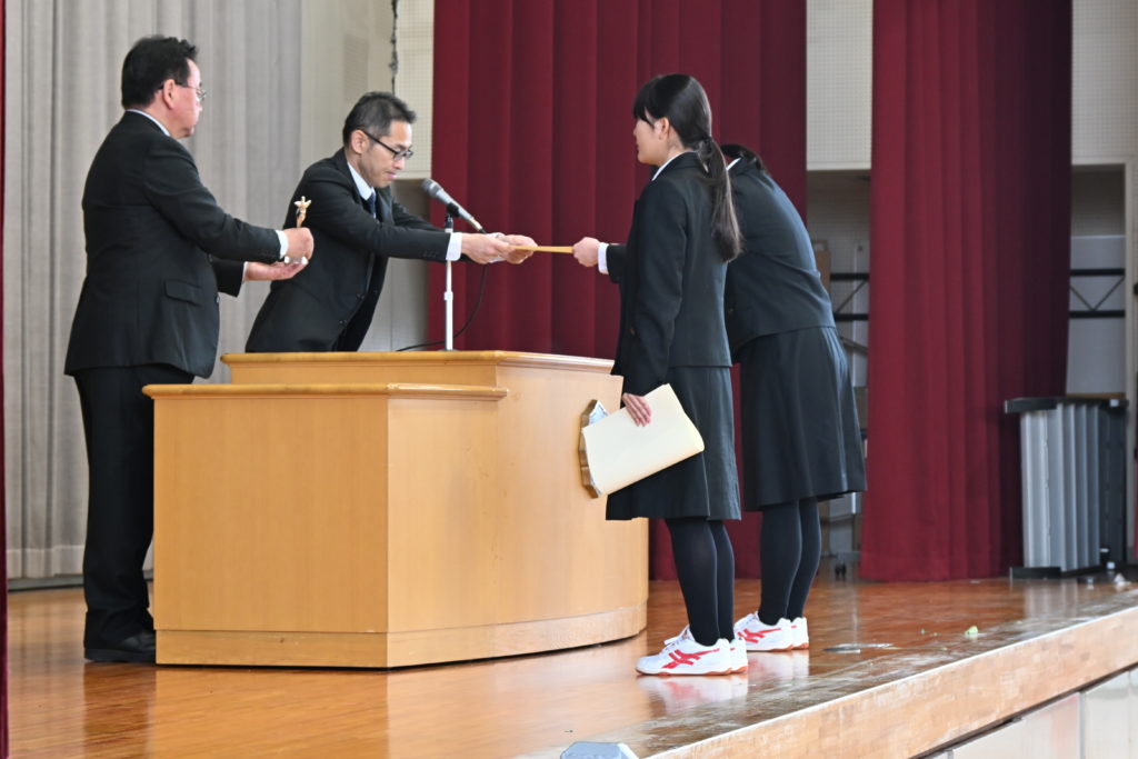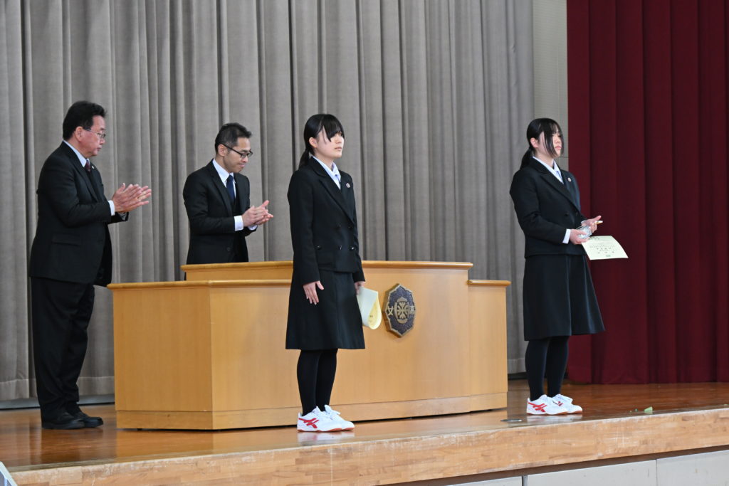 吹奏楽部とボクシング部の生徒に表彰状が伝達されました。