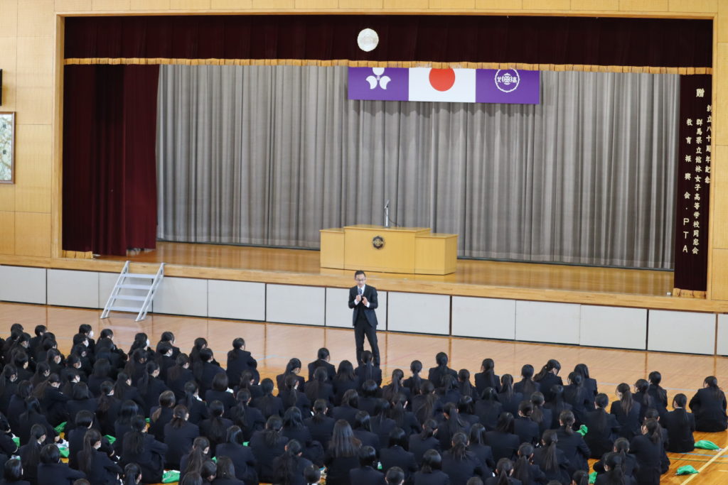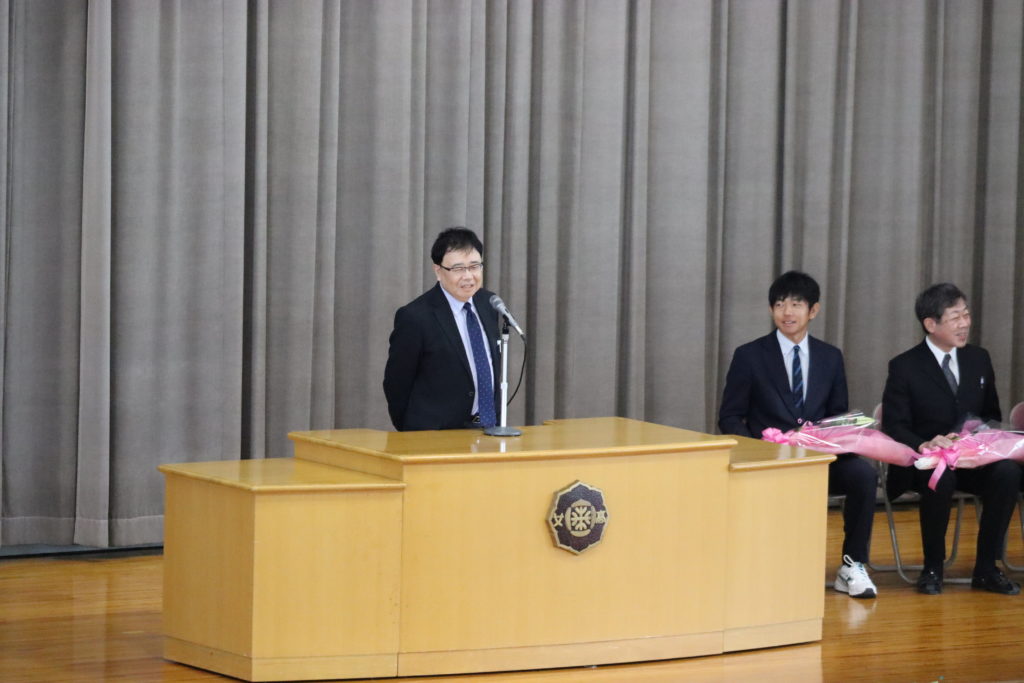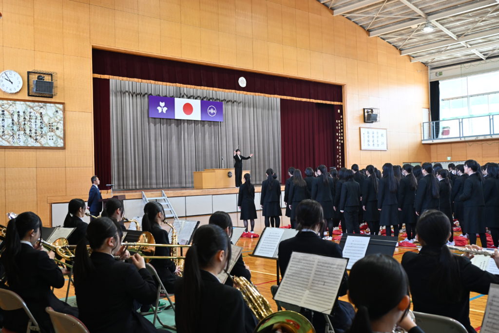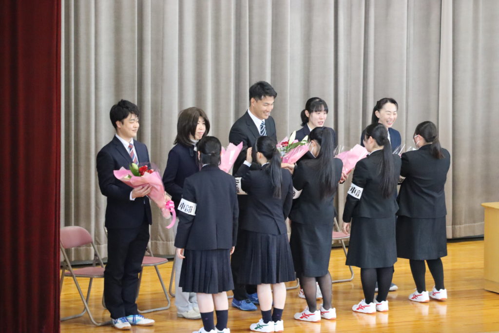 先生方との別れを惜しみ、涙を浮かべている生徒の姿も見られましたが、離退任職員のお別れの挨拶では先生方のユーモアあふれるお話が続き、終始笑顔の絶えない温かな式となりました。